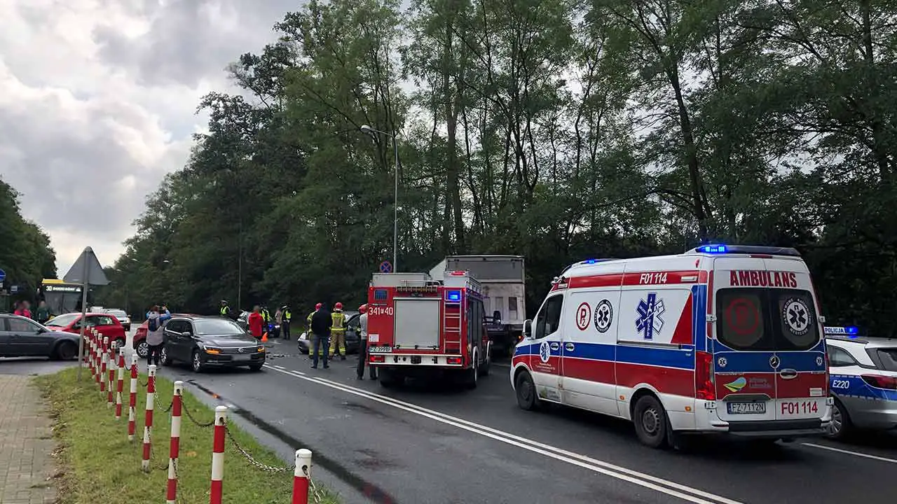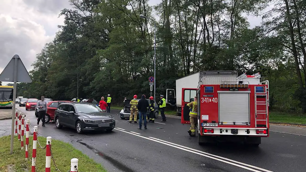 Około godz. 11.20 doszło do zderzenia pięciu pojazdów. Na miejsce wypadku dotarła zielonogórska policja, dwa wozy straży pożarnej oraz dwie karetki. W wyniku wypadku ranne zostały dwie osoby.