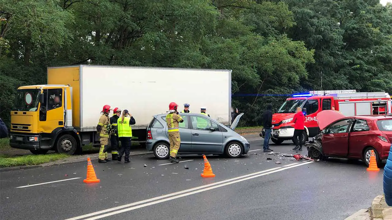 Do poważnego zderzenia doszło w sobotę, 10 października, na ul. Wrocławskiej przy cmentarzu. Zderzyły się cztery osobówki i ciężarówka. Dwie osoby zostały ranne.