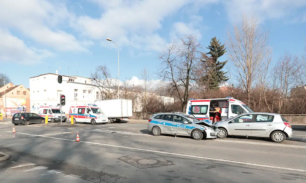 Na miejsce wypadku dojechało kilka karetek pogotowia ratunkowego oraz samochody policji. – Rannych zostało pięć osób – mówi podinsp. Barska. To dwaj policjanci, przewożony przez nich mężczyzna oraz osoby z renault.