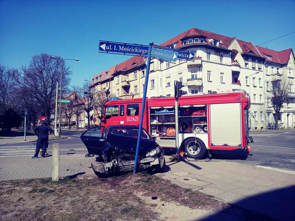 Do poważnego wypadku doszło w niedzielę, 5 kwietnia, na skrzyżowaniu ul. Kosynierów Gdyńskich, Mickiewicza i Mościckiego. Kierujący taksówką mercedes wjechał na skrzyżowanie na czerwonym świetle i uderzył w bmw, które przewróciło się na bok.