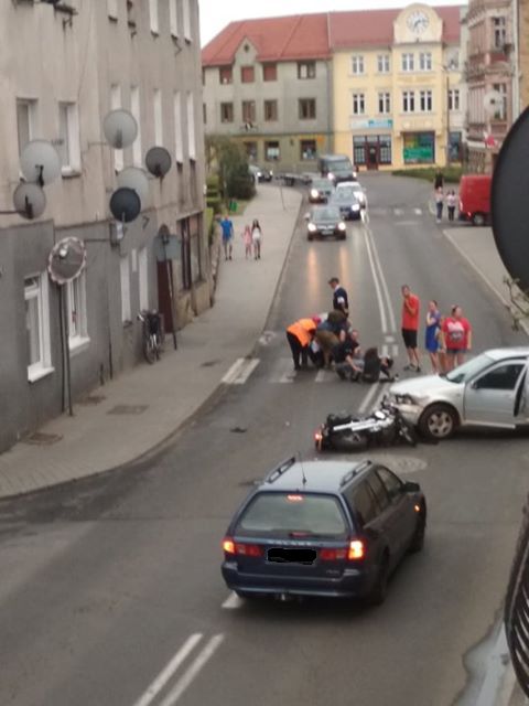 Do wypadku doszło na ul. Jana Pawła II w Sulechowie. Zderzyły się samochód osobowy i motocyklista.