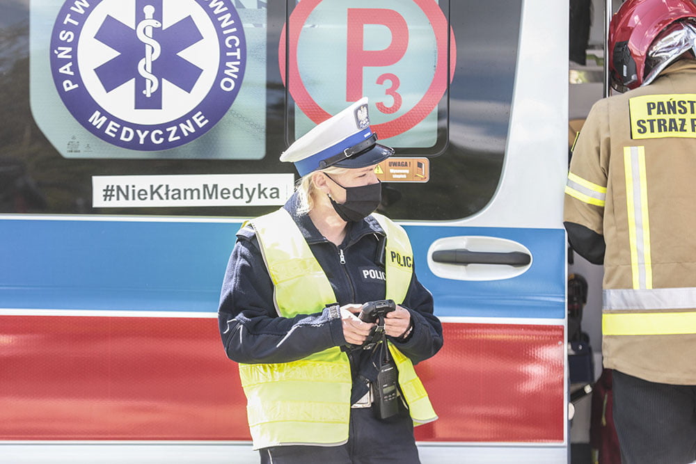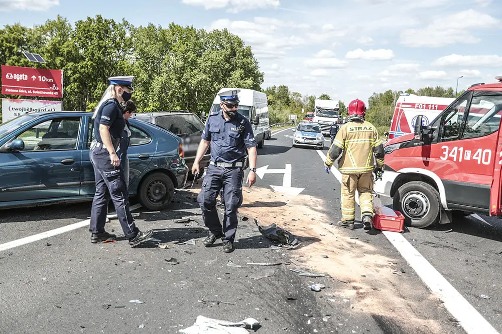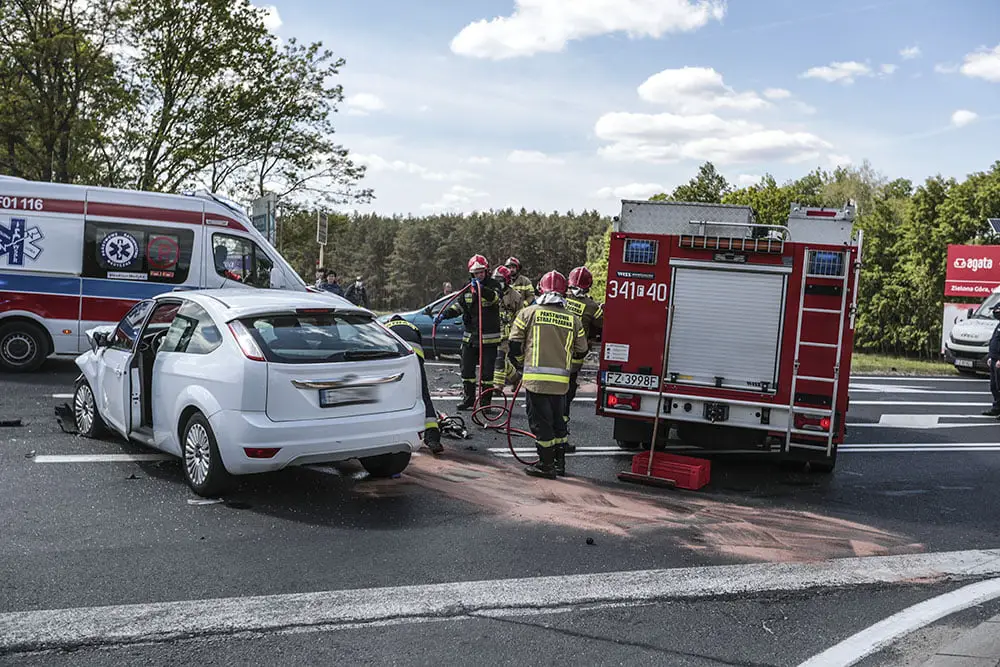 Na miejsce wypadku szybko dojechały służby ratunkowe. Zielonogórscy strażacy zabezpieczyli miejsce zdarzenia. Sprzętem hydrauliczny wycieli kierowcę z rozbitego volkswagena. Na miejsce dotarły dwie karetki pogotowia ratunkowego. Dwie ranne osoby, kierowca volkswagena i kierujący fordem, zostali zabrani do szpitala w Zielonej Górze. Droga jest zablokowana.