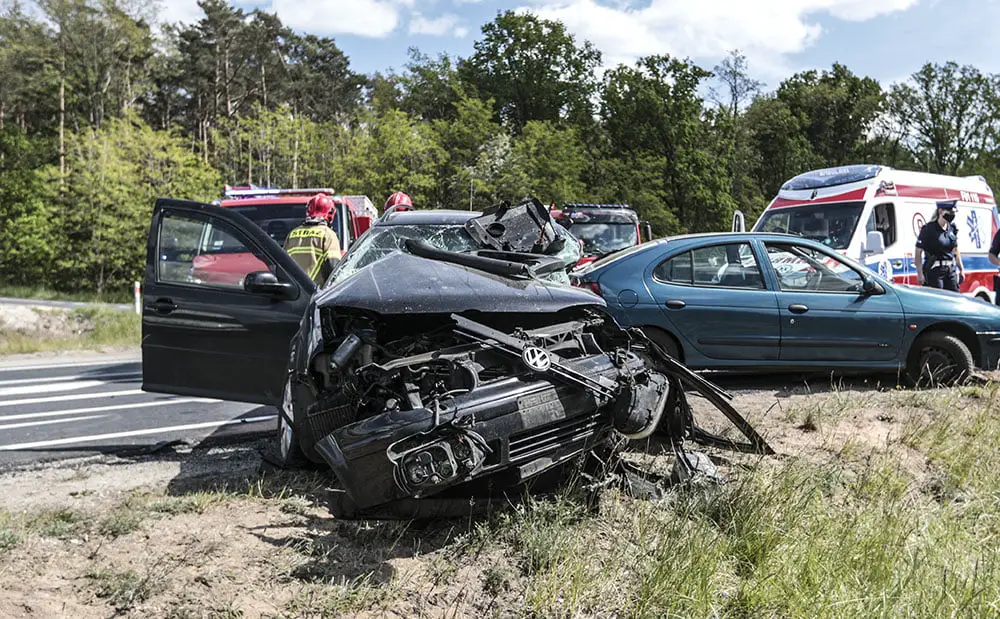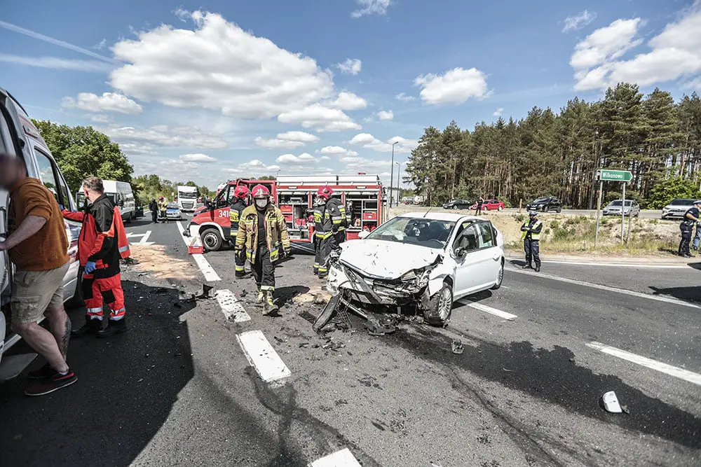 Kierujący volkswagenem jechał z Wilkanowa do Buchałowa. Musiał przeciąć drogę krajową nr 27. Tą drogą jechał kierujący fordem. Miał pierwszeństwo. Kierowca volkswagena wjechał jednak na skrzyżowanie. – Volkswagen nagle ruszył i wjechał prosto pod forda – mówi nam świadek wypadku. Doszło do potężnego zderzenia. Volkswagen uderzony w bok wypadł z drogi. Z auta wypadł silnik. W samochody uderzył jeszcze kierujący renault jadący w kierunku Świdnicy. Na jego pas wpadł volkswagen po zderzeniu z fordem.