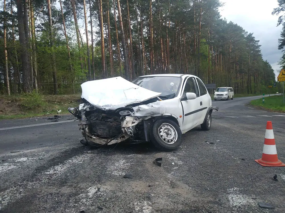 Kierujący oplem jechał drogą w kierunku Starego Polichna. Wjechał na skrzyżowanie nie upewniając się czy może. Drogą w kierunku miejscowości Lipki jechał kierujący renault. Zauważył opla, który wjeżdżał na skrzyżowanie, ale nie był w stanie uniknąć zderzenia.