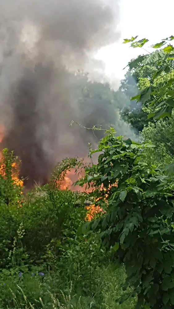 Pożar altanki zamieszkanej przez osoby bezdomne wybuchł na działkach Lumelu, dziś opuszczonych. Strażacy mieli problem z dojazdem.