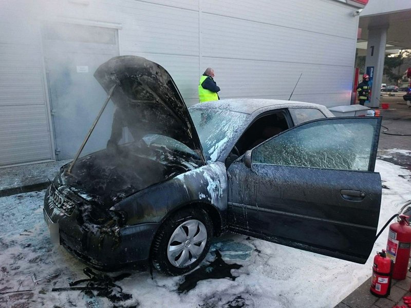 Wszystko wydarzyło się w poniedziałek, 26 lutego. Policjant z nowosolskiej drogówki podczas patrolu zauważył ogień. Natychmiast podjechał na stację benzynową, na której zobaczył płonący samochód. Palił się przód audi.