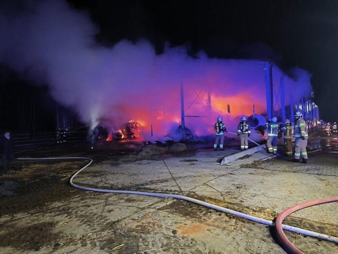 Zgłoszenie pożar dyżurny strażaków w Szamotułach dostał w poniedziałek,15 grudnia 2025 roku około godz. 18:00. Paliły się baloty słomy w oborze w miejscowości Wróblewo (gm. Wronki). Na miejsce natychmiast wysłano trzy zastępy strażaków z Szamotuł i wozy OSP Wróblewo, Kłodzisko, Ćmachowo, Amica oraz OSP Wronki. Na miejsce dojechała również policja. Po dojeździe na miejsce zdarzenia strażacy zastali pożar balotów słomy i siana, które znajdowały się pod wiatą magazynową. Nie było zagrożenia dla innych budynków, pod wiatą nie było również żadnych maszyn rolniczych.