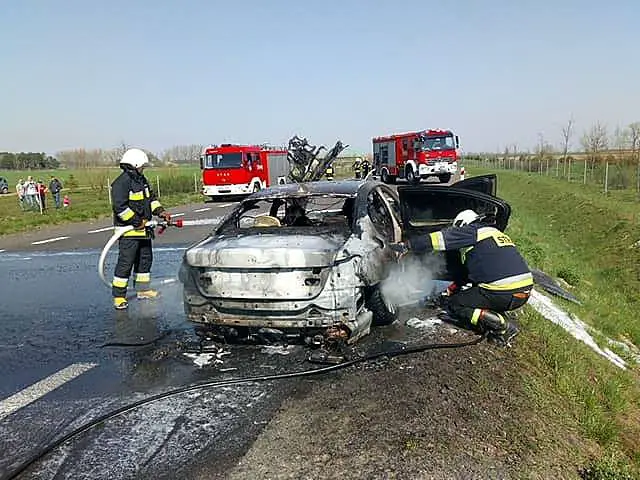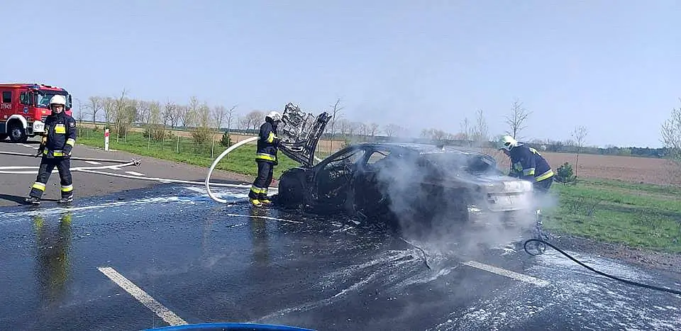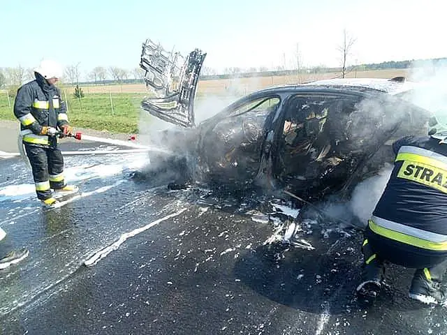 Strażacy szybko opanowali pożar. Niestety, samochód spłonął doszczętnie.