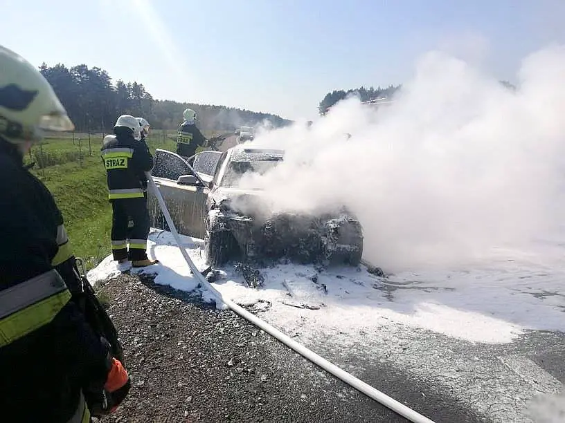 Gdy pierwszy zastęp strażaków dojechał na miejsce, samochód był już cały w płomieniach. Strażacy zaczęli gasić płonące bmw. Wstrzymali też ruch na drodze w obu kierunkach.