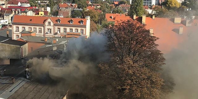 Do pożaru doszło we wtorek, 16 października. Pali się poddasze budynku przy ul. Fabrycznej 13. Na miejscu są już wozy straży pożarnej.