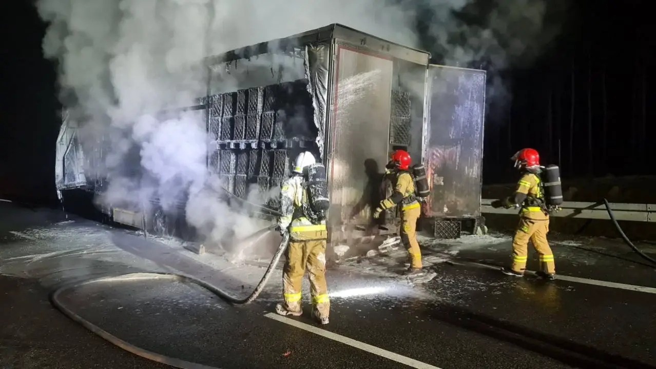 Ciężarówka paliła się na trasie S3, na pasie w kierunku Gorzowa. Kiedy strażacy dojechali do zdarzenia naczepa z częściami do ciężarówek była już w ogniu.