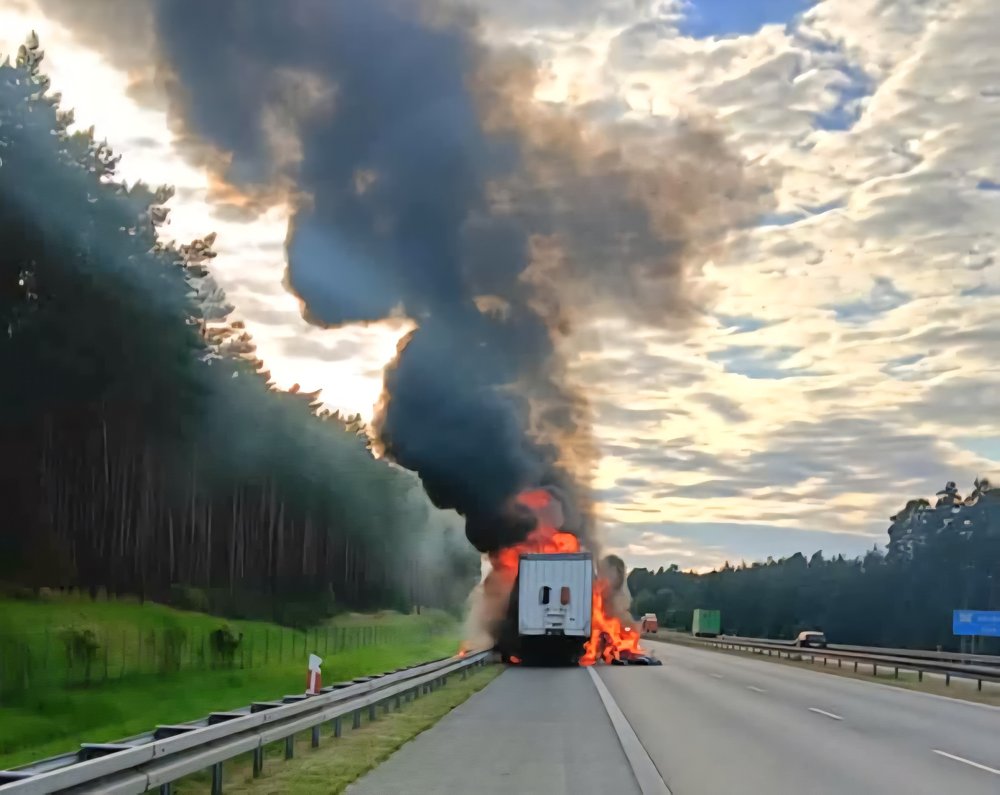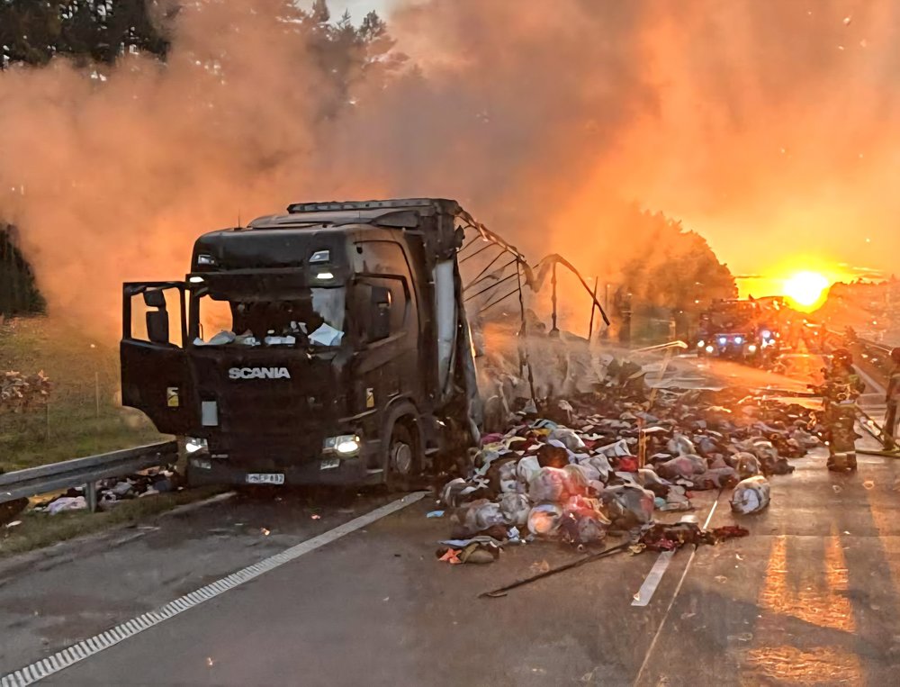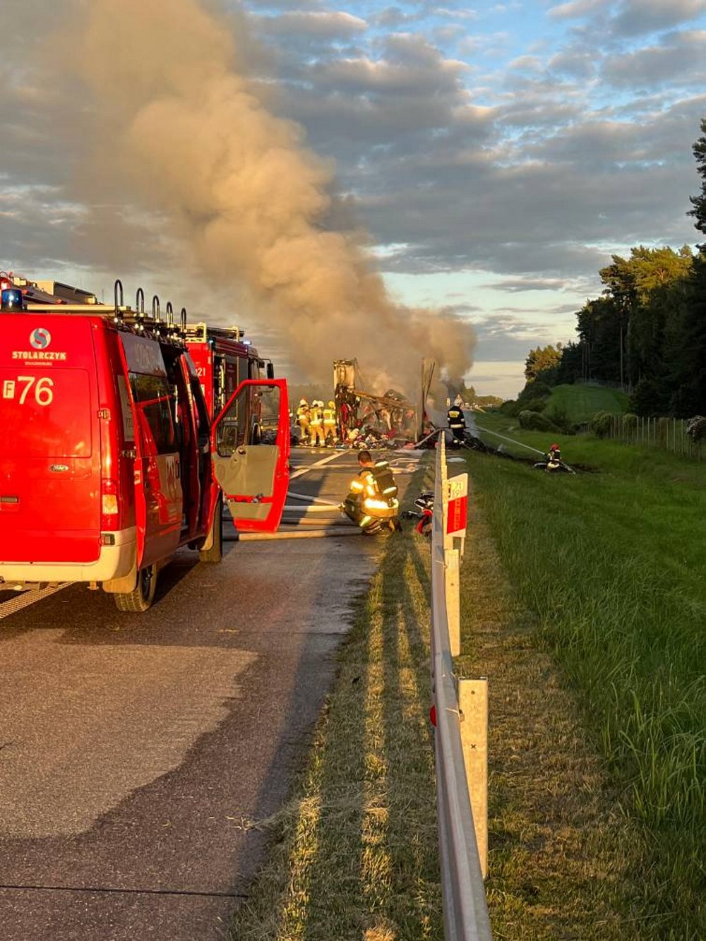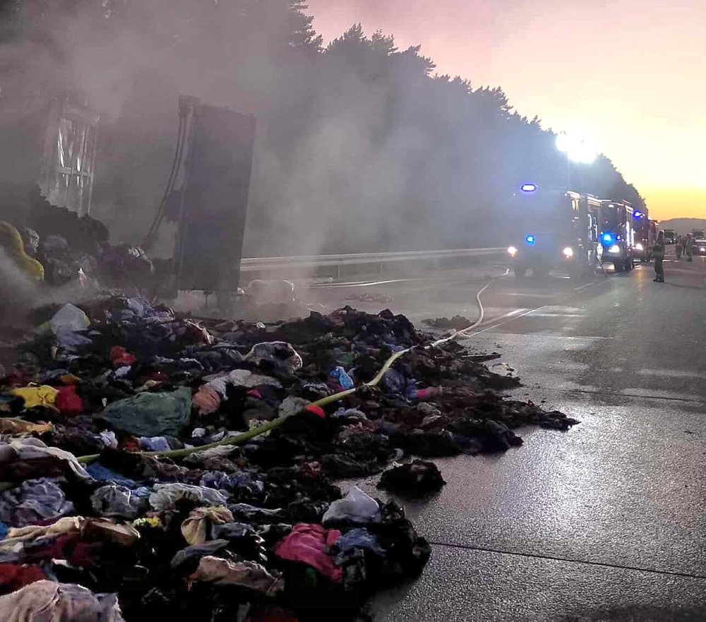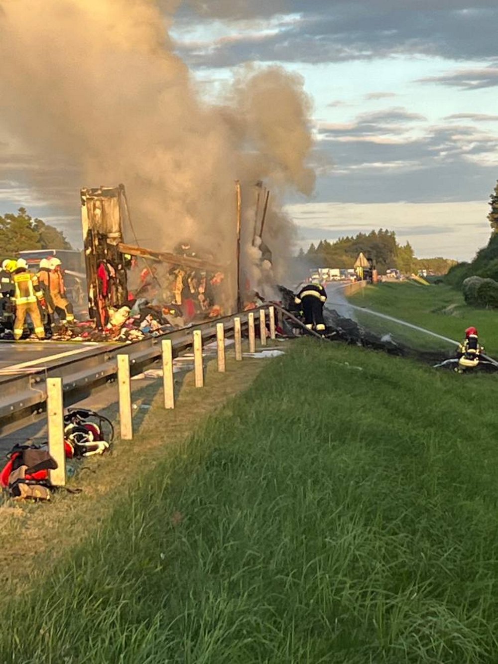 Pożar ciężarówki wiozącej tekstylia wybuchła na autostradzie A2. Kłęby dymu widoczne były z wielu kilometrów. Z pożarem walczyło osiem zastępów straży pożarnej zawodowej oraz OSP.