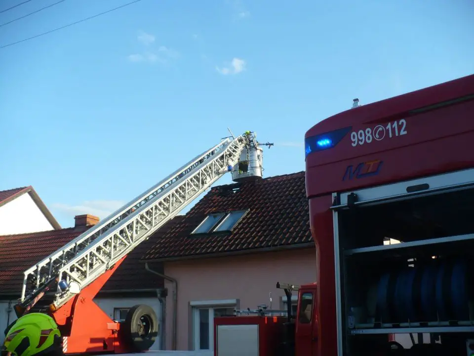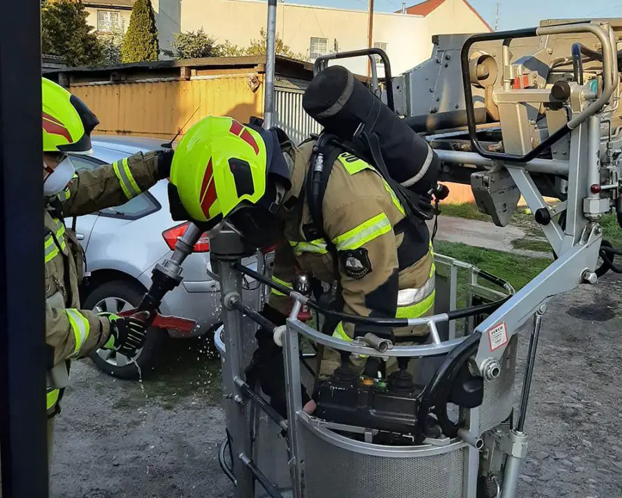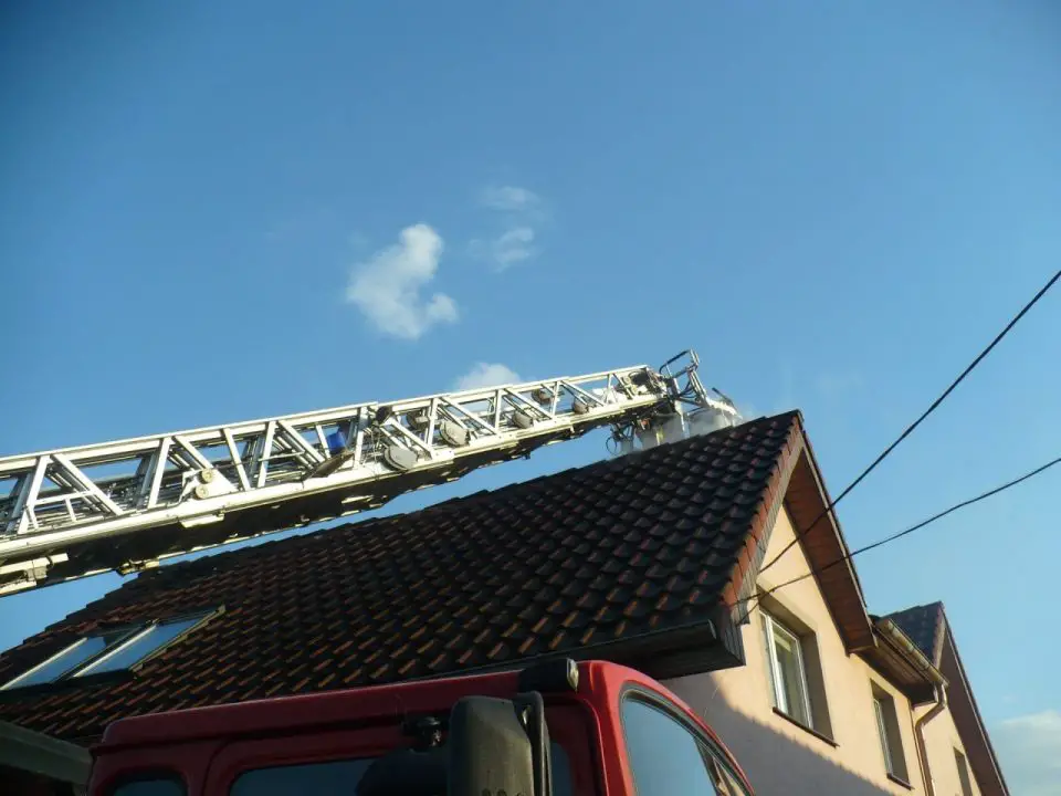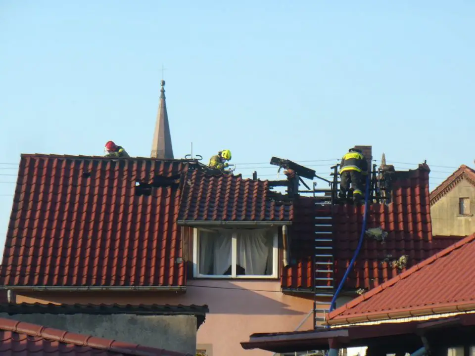Pierwszy zastęp zaczął zalewać pożar wodą. Gdy dojechała drabina, strażacy zaczęli ląc wodę na palące się krokwie dachu, a po lokalizacji, rozpoczęli dokładne dogaszanie elementów dachu.
