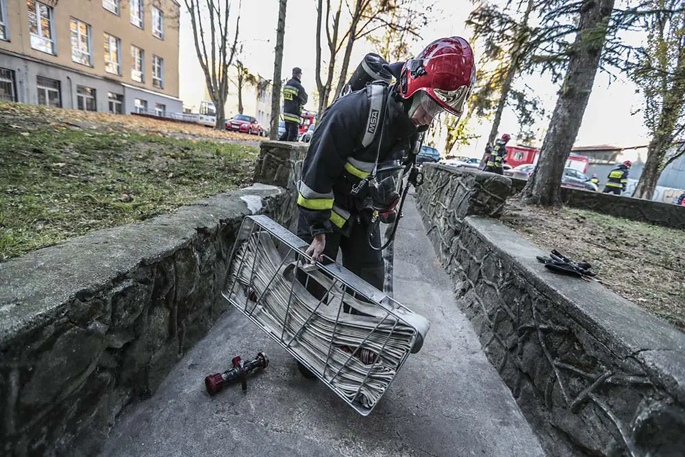 Ćwiczenia ruszyły kilka minut po godz. 9.00 głośną syreną alarmującą o pożarze. Po chwili pod szpital podjechały wozy strażaków zawodowych i OSP. W ćwiczeniach wziął również udział personel szpitala.