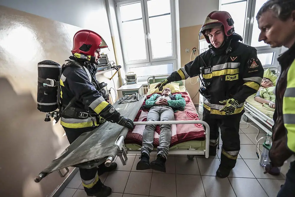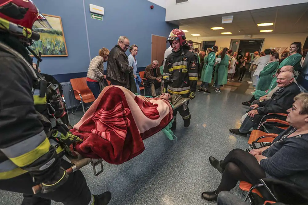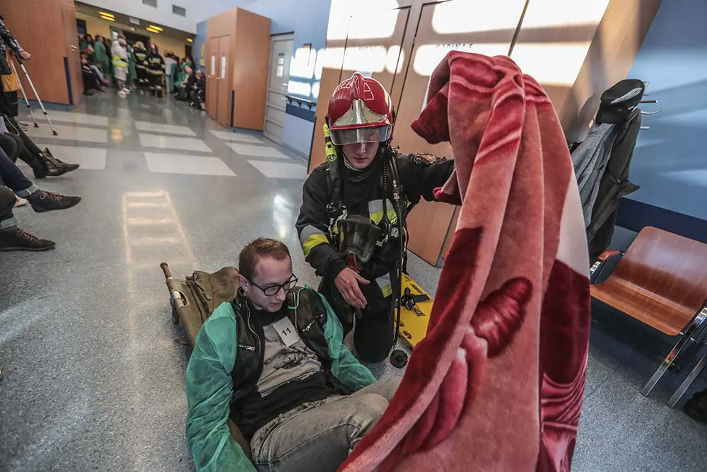 Celem takiej akcji jest wypracowanie postępowania w przypadku powstania pożaru. W ramach ćwiczeń m.in. ewakuowano 40 pozorantów z budynku U, w którym znajduje się oddział pulmonologii.