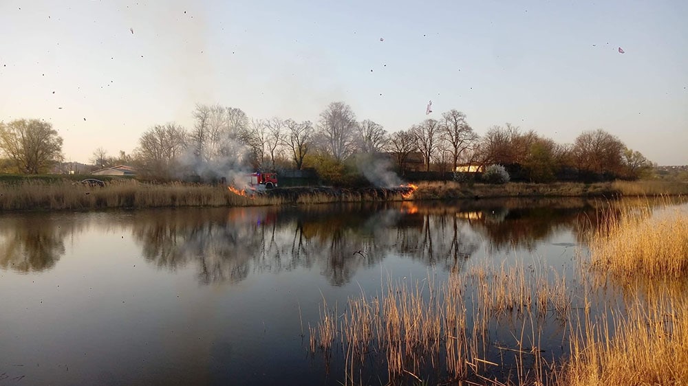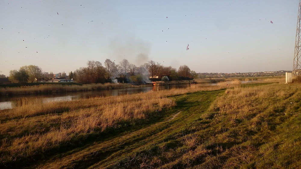 Pożar wybuchł około godz. 19.00. Płomienie zajęły nieużytki wzdłuż kanału Ulgi. Na miejscu szybko pojawiła się zaalarmowana straż pożarna. Strażacy na szczęście szybko opanowali pożar. Na miejscu był jeden wóz gaśniczy.