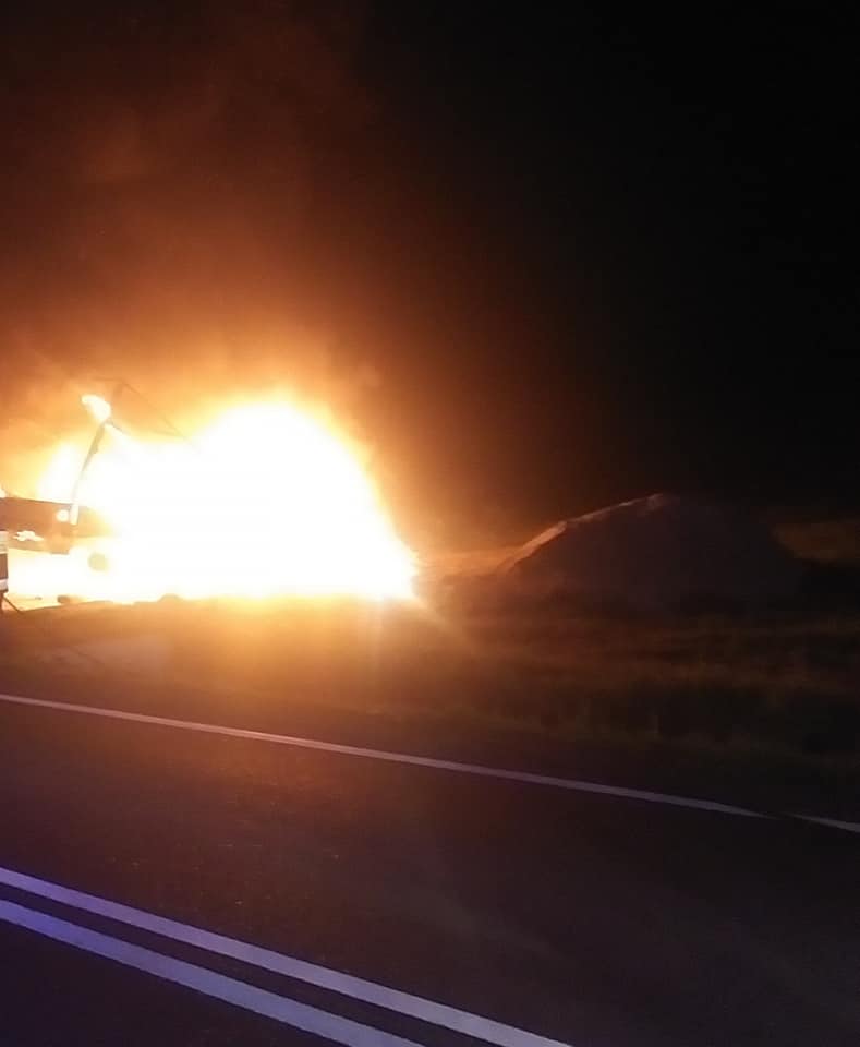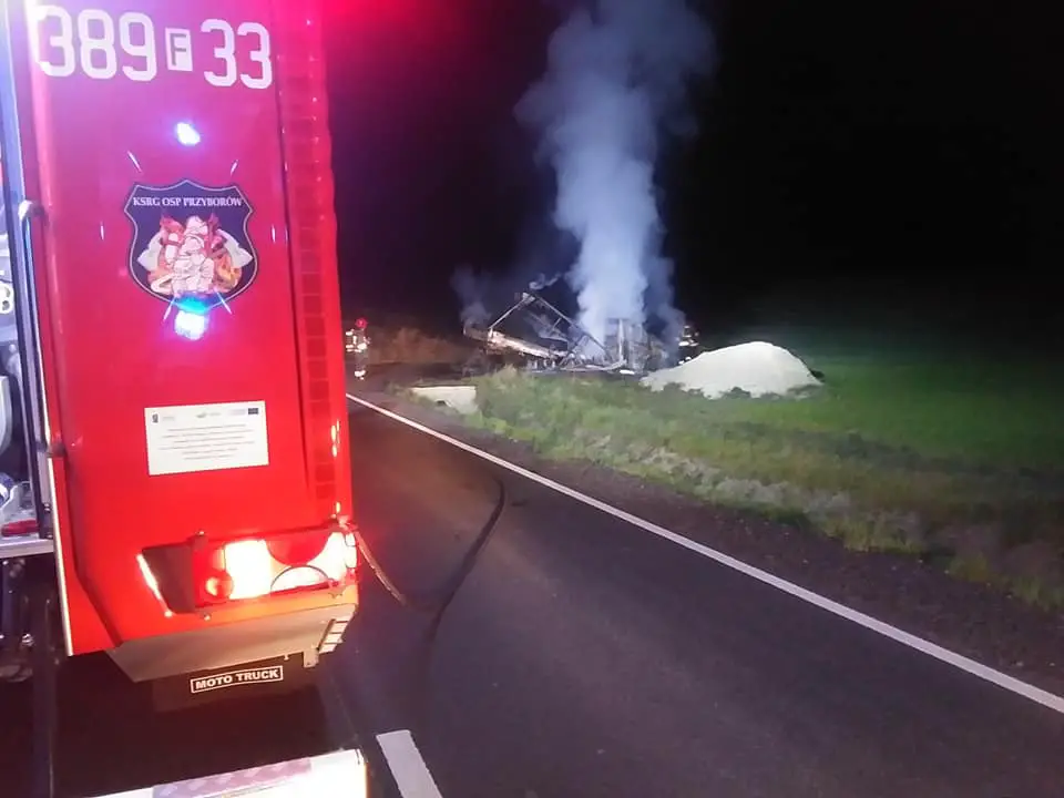 Do pożaru doszło w sobotę, 25 kwietnia, przed północą. Na drodze koło miejscowości Lipiny zapalił się samochód dostawczy.
