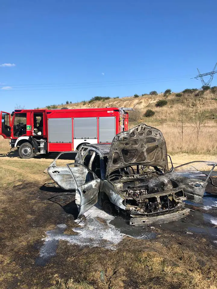 Do zdarzenia doszło w poniedziałek 15 kwietnia. Kiedy strażacy OSP Kłodawa dotarli na miejsce zgłoszenia okazało się, że nie płoną śmieci tylko samochód. Od płonącego wraku samochodu zajęła się również trawa na powierzchni około dwóch arów.