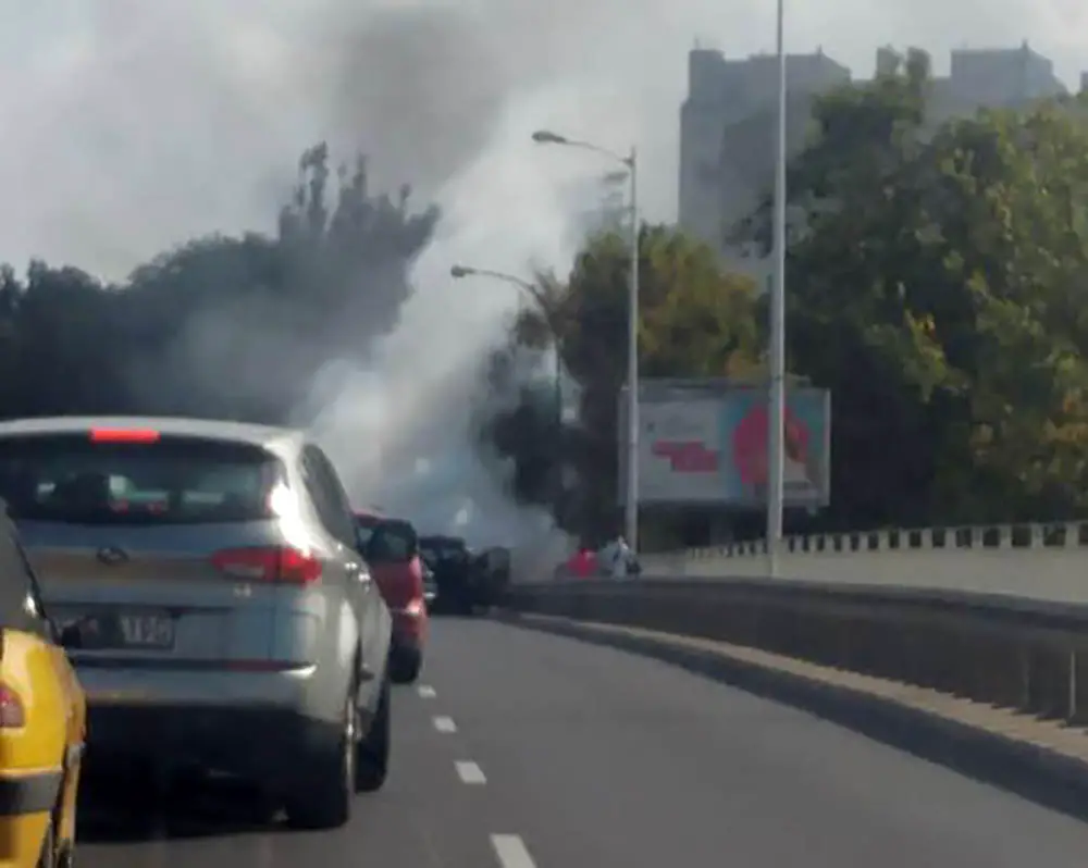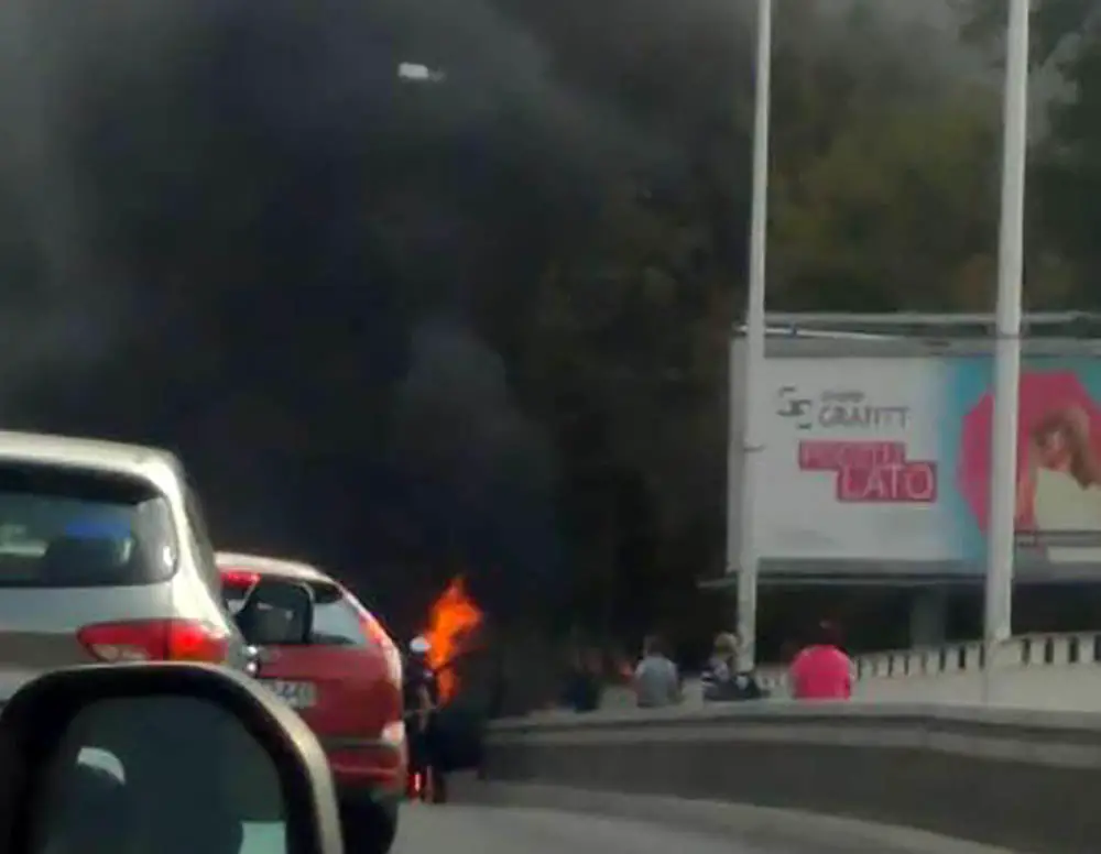 Godz. 15.36 Pasy jezdni w kierunku miasta są zablokowane. Samochód został już ugaszony. Renault zapalił się podczas jazdy.