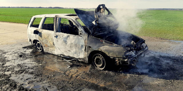 Niestety, samochód osobowy spłonął doszczętnie. Przyczynę pożaru będą ustalać policjanci.