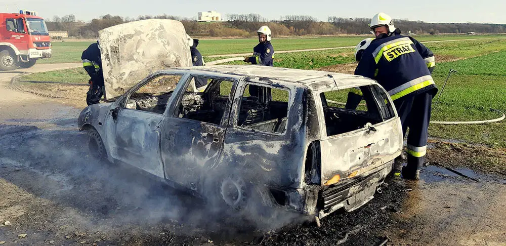 Niestety, samochód osobowy spłonął doszczętnie. Przyczynę pożaru będą ustalać policjanci.