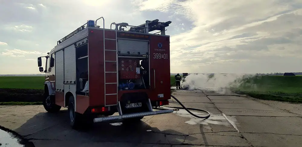 Kiedy strażacy OSP Cybinka dojechali na miejsce zdarzenia, na „betonówkę” prowadzącą z Bieganowa do Rybojedzka, samochód był już cały w ogniu. Ruszyła walka z płomieniami. W międzyczasie na miejsce pożaru dojechała słubicka policja.