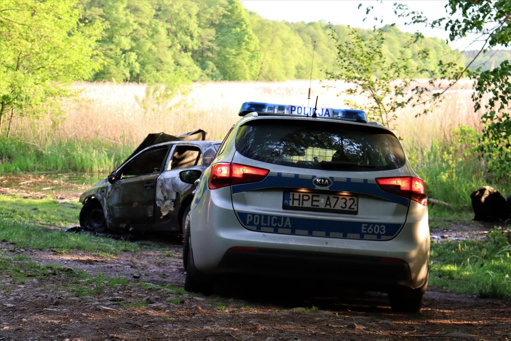 Pożar samochodu zaparkowanego przy głównej plaży w Wilkowie został zauważony około godz. 19.45.