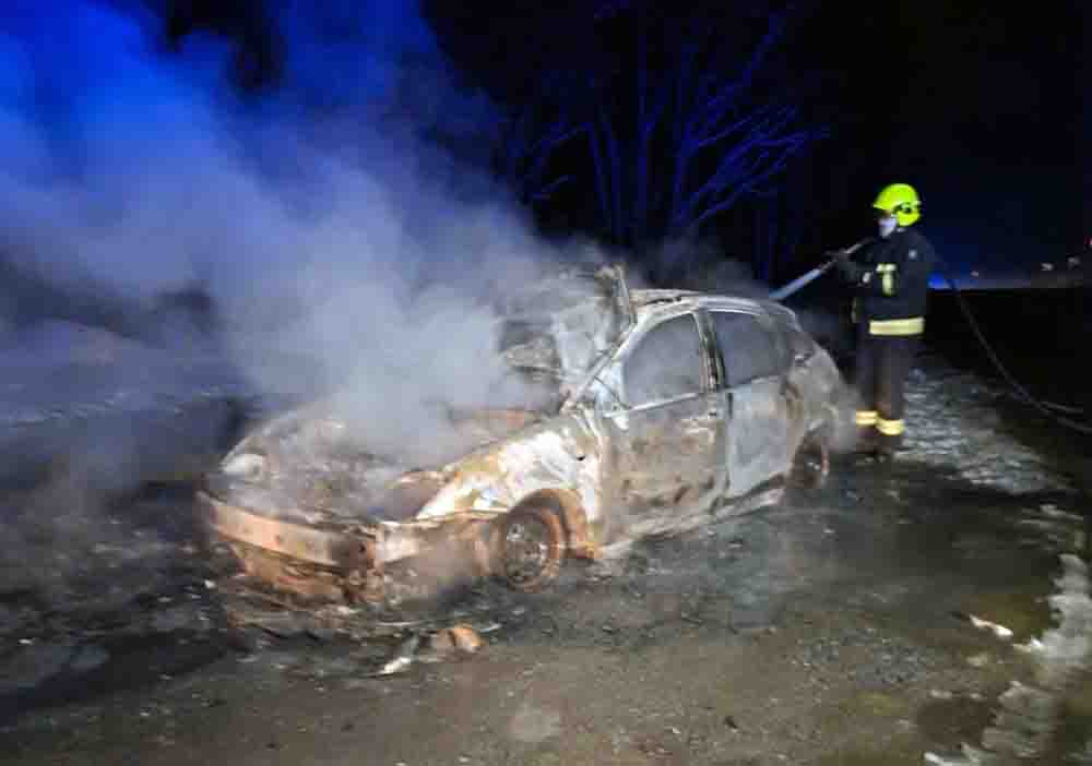 Do pożaru samochodu w miejscowości Podbrzezie Górne doszło we wtorek, 10 lutego. Mimo szybkiej akcji samochód spłonął doszczętnie.