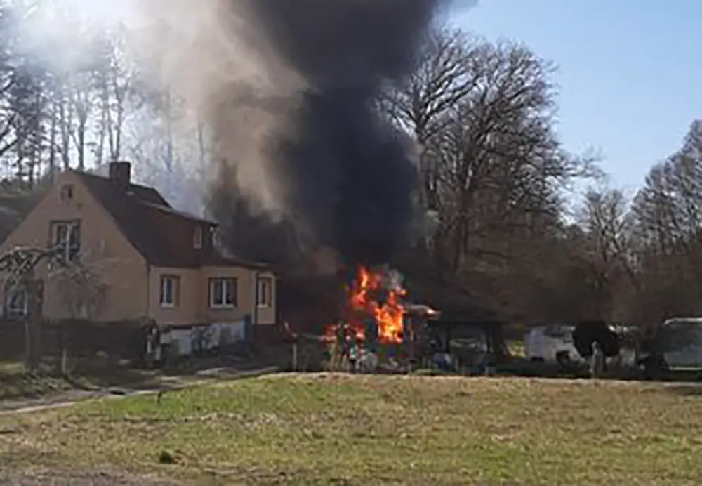 Pożar stodoły z samochodem w środku wybuchł w piątek, 2 kwietnia. Z ogniem walczyły cztery jednostki straży pożarnej zawodowej i OSP.