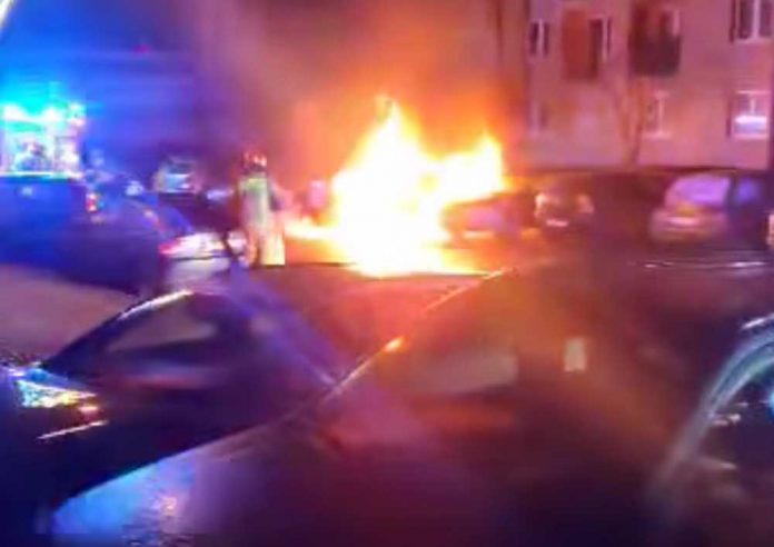 Zaparkowany na ulicy Szprotawskiej samochód najprawdopodobniej zapalił się od petardy. Na miejsce została wezwana straż pożarna. Kiedy strażacy dojechali na miejsce samochód był cały w płomieniach.