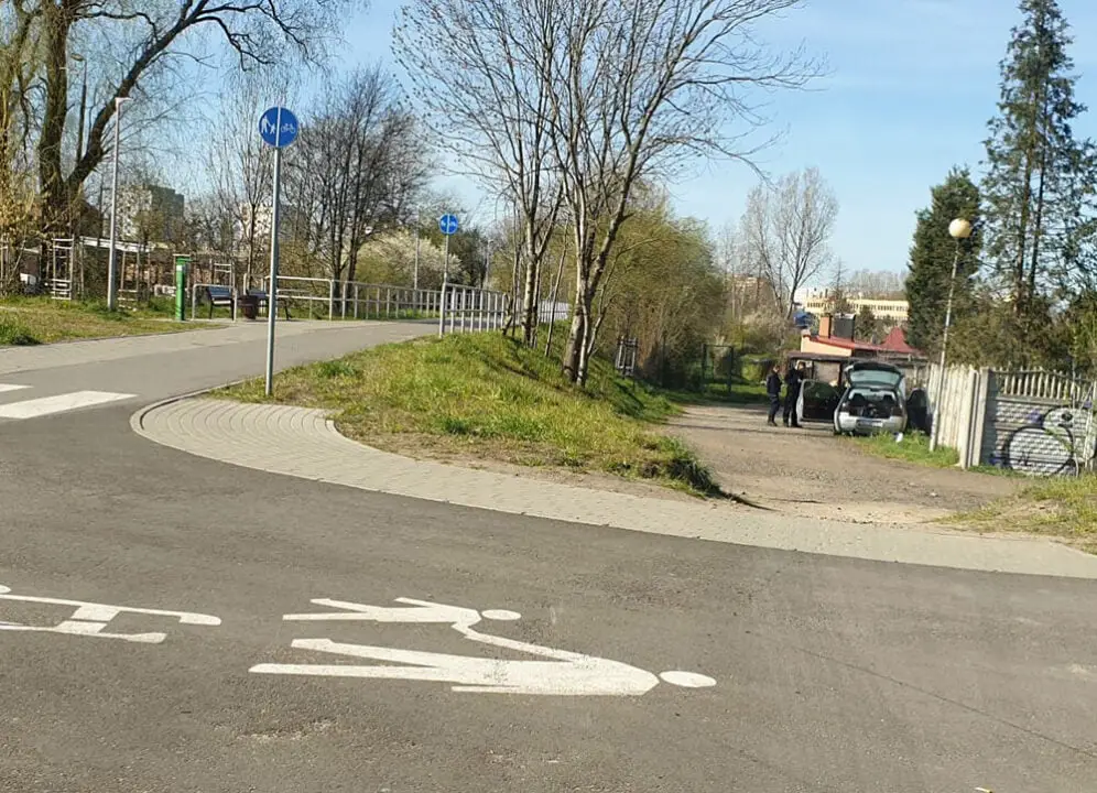 Do pożaru doszło w sobotę, 11 kwietnia, z samego rana przy nowym rondzie łączącym ul. Herberta z al. Zjednoczenia. Na miejsce dotarła straż i policja.