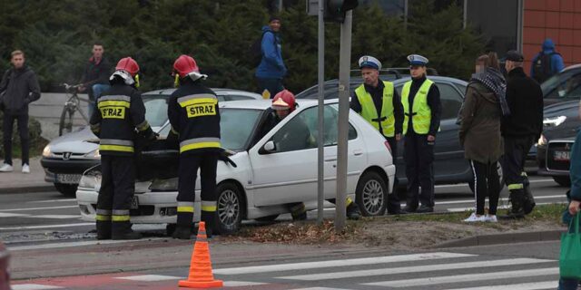 Do pożaru peugeota doszło w piątek, 9 listopada, na al. Konstytucji 3 Maja przy hotelu Ruben. Na miejsce przyjechały straż pożarna i policja.