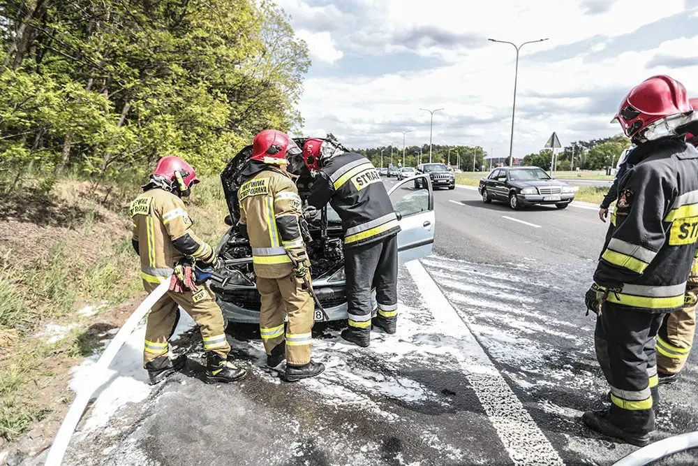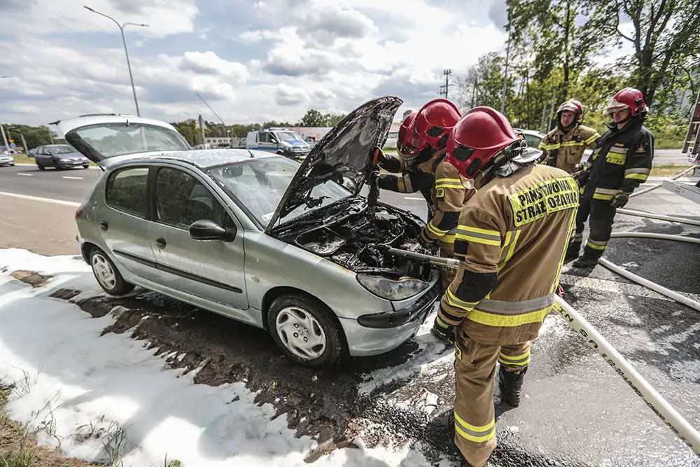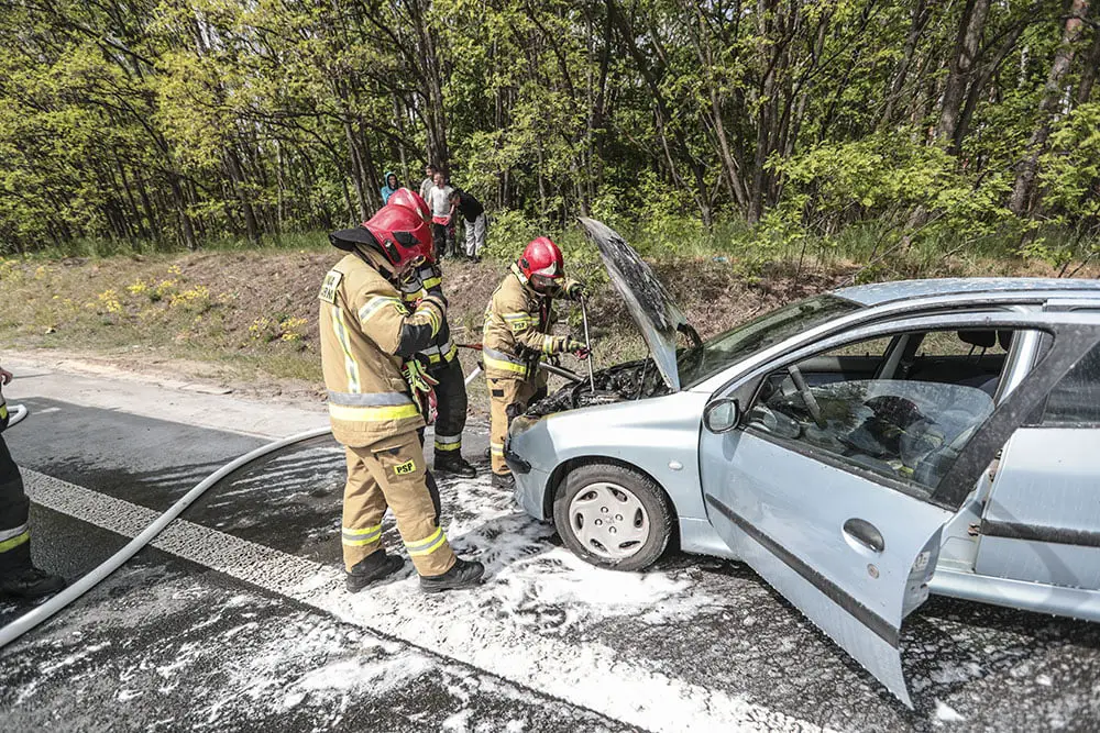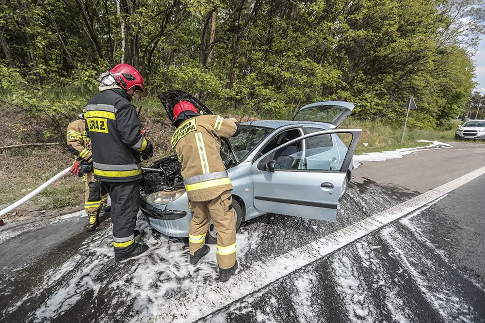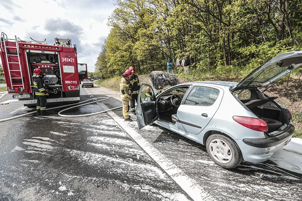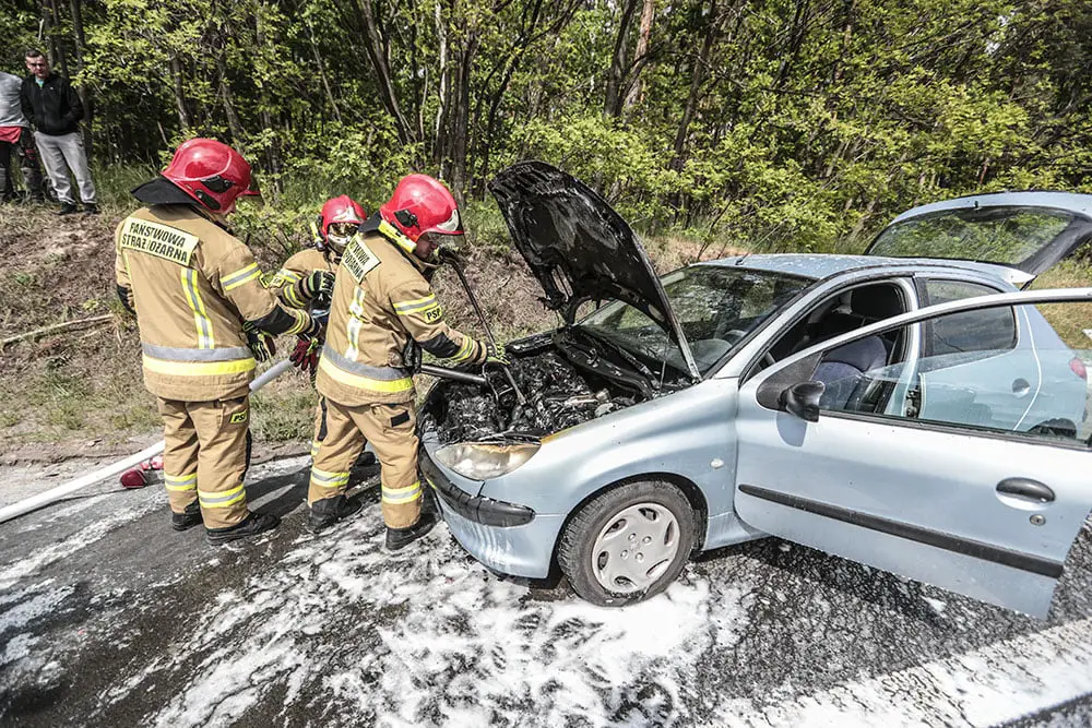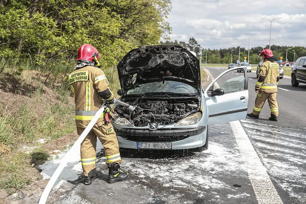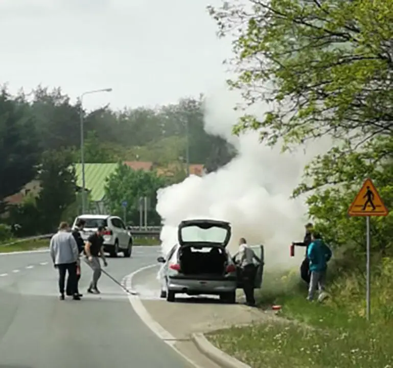 Kierujący peugeotem z pasażerami jechali do Zielonej Góry. Na rondzie Andrzeja Huszczy z auta zaczął wydobywać się dym. Tuż po zjechaniu z ronda spod maski widać było już płomienie. Na ratunek ruszyli kierowcy oraz policjanci, którzy nadjechali na zdarzenie. Wspólnie zaczęli gasić pożar samochodu.