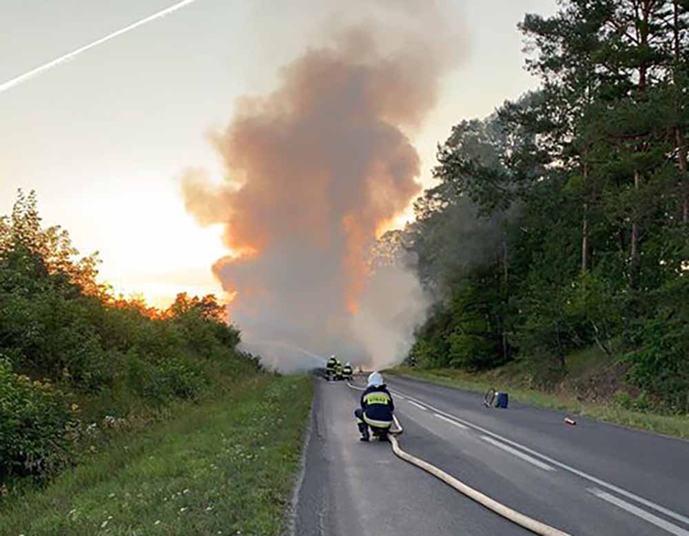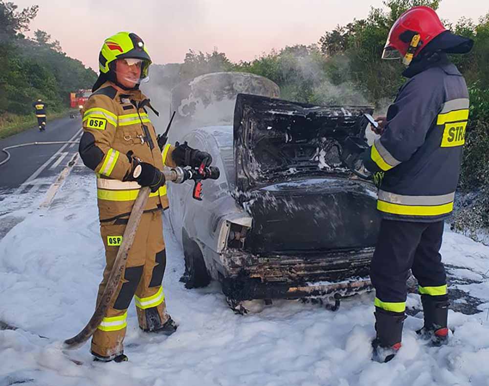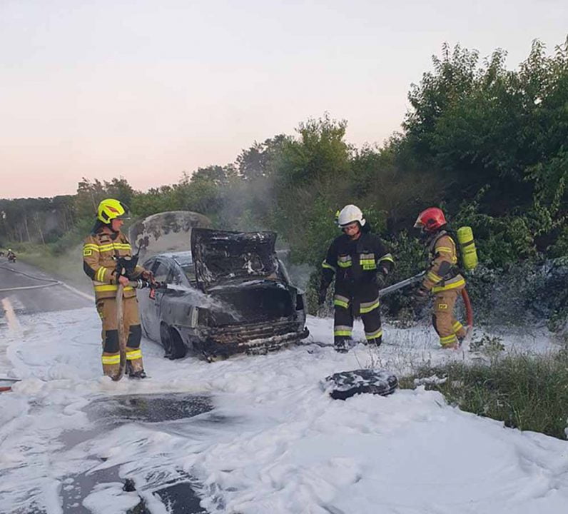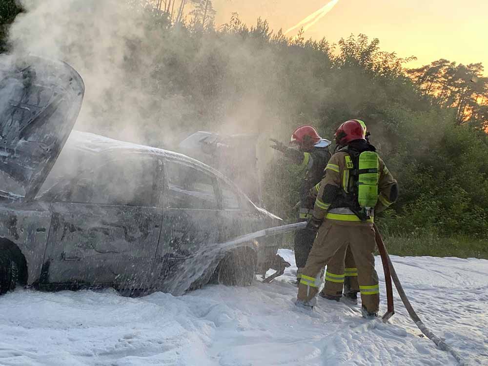 Do pożaru samochodu doszło na drodze koło miejscowości Carny Bocian w okolicach Trzciela.