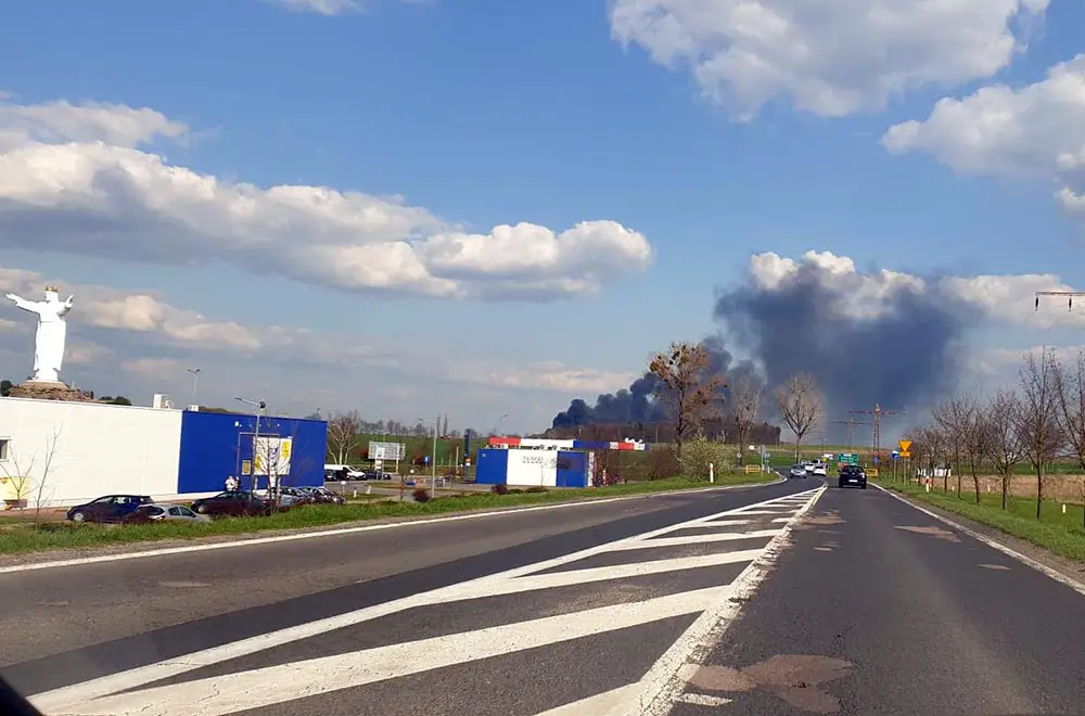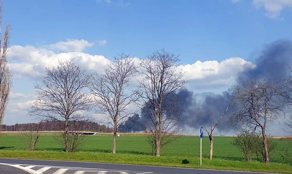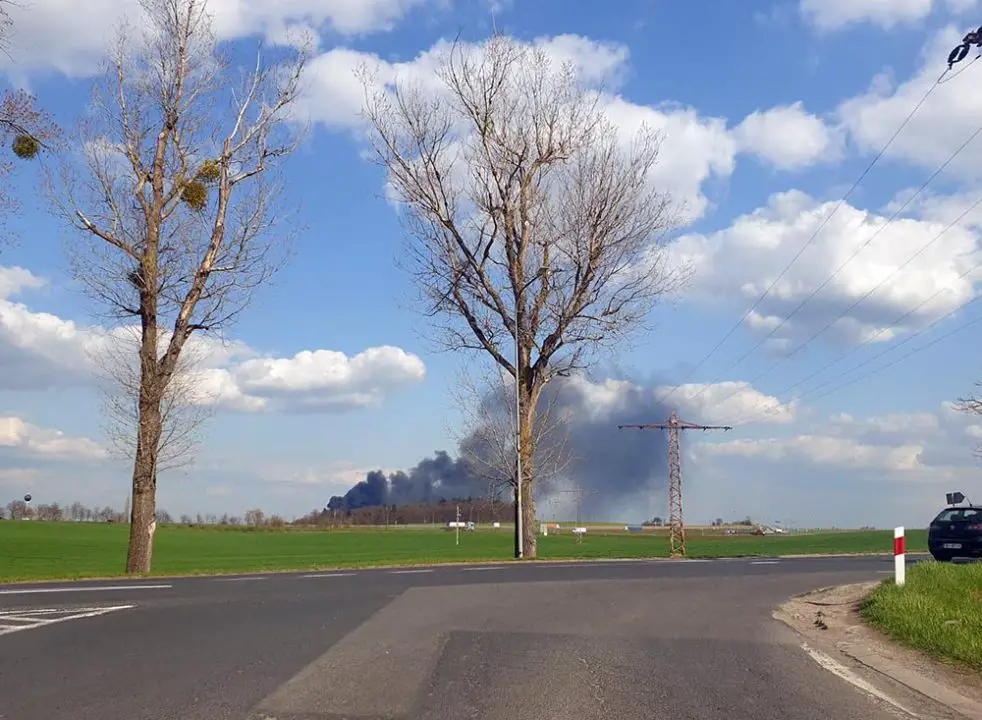 Do pożaru doszło w środę, 21 kwietnia. Strażacy gaszą pożar składowiska opon w Lubinicku. Dym widać w Świebodzinie.