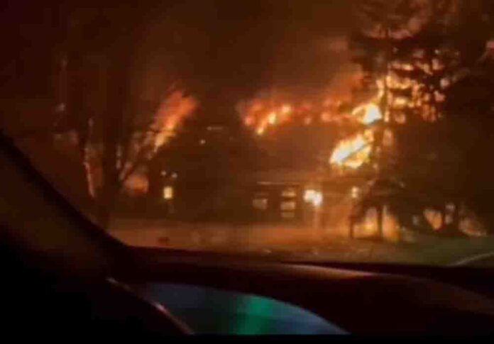 Na obecną chwilę nie wiadomo czy ktoś jest w środku stodoły. Płomienie uniemożliwiają wejście do wewnątrz.