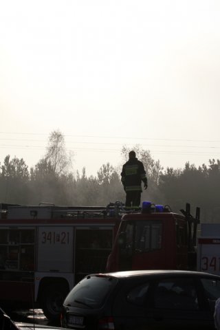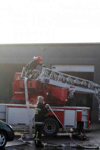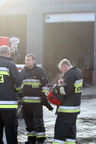 Pożar wybuchł około godz. 8.00. Właściciel hali z materiałami budowlanymi dostrzegł płomienie, które wydobywały się z komina.