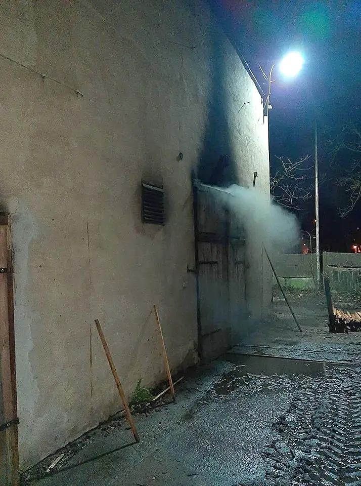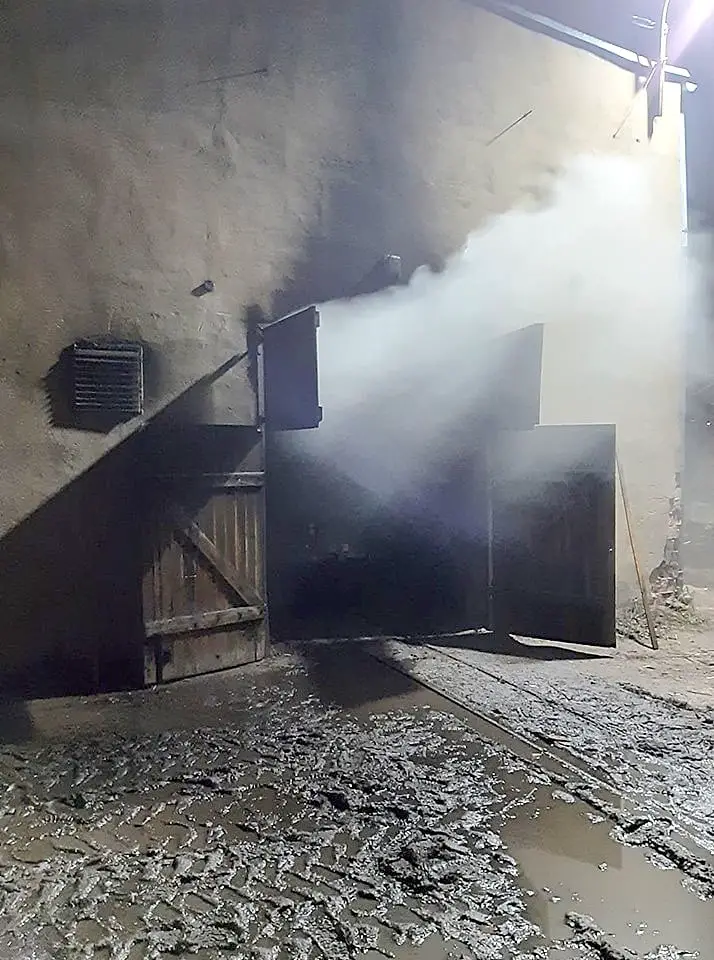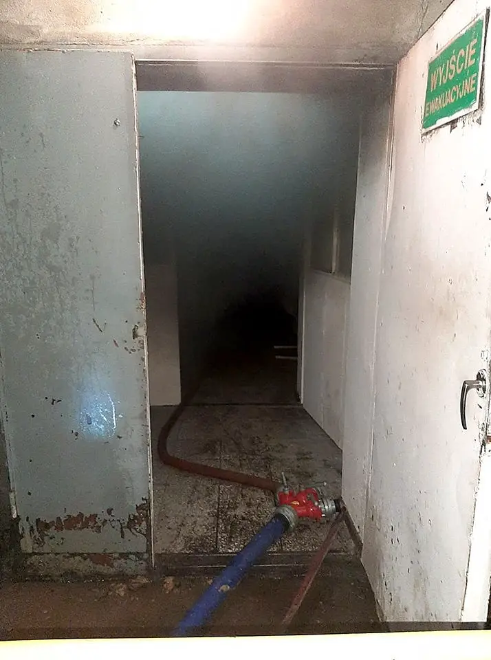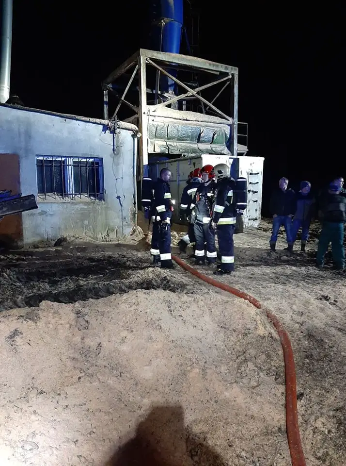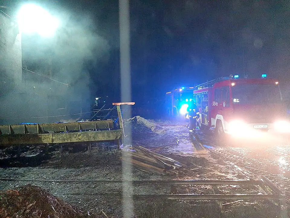 Po dojeździe pierwszego zastępu okazało się, że z hali traków wydobywa się dym. Strażacy w aparatach powietrznych weszli do środka i stwierdzili, że pali się ciągnik. Ogień szybko został opanowany, ale konieczne było oddymienie całej hali i pozostałych pomieszczeń. Po wyciągnięciu ciągnika na zewnątrz, strażacy dogasili tlące się jeszcze części opony i przewody gumowe.
