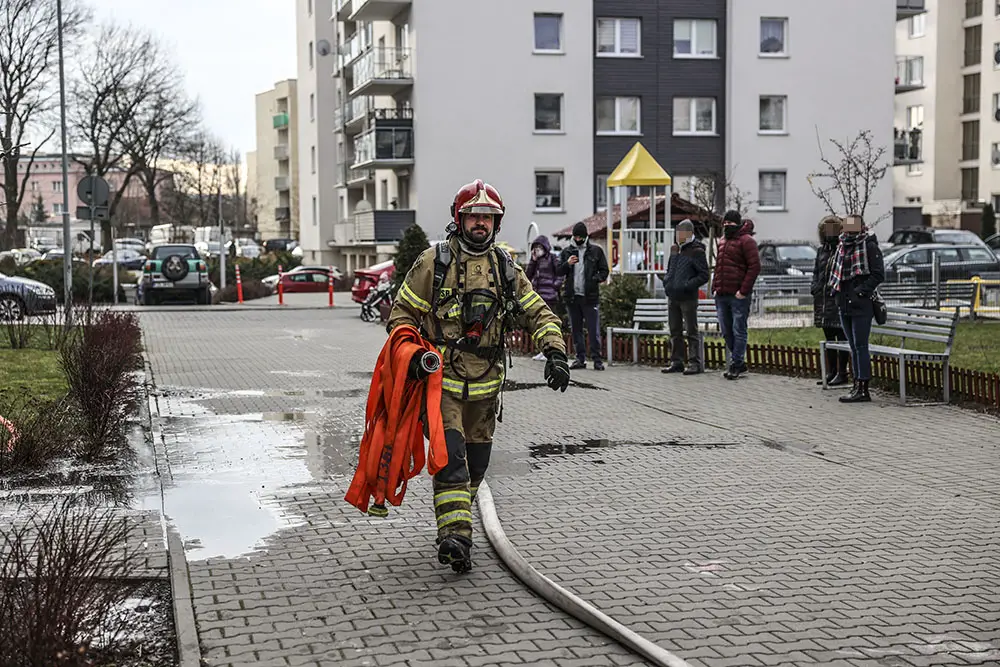 Pożar w bloku przy ul. Obywatelskiej wybuchł we wtorek, 29 grudnia. W mieszkaniu na czwartym piętrze zapaliła się kuchenka elektryczna. W domu było duże zadymienie. Dziecko samo wyszło z mieszkania. Strażacy wyprowadzili ojca i psa.
