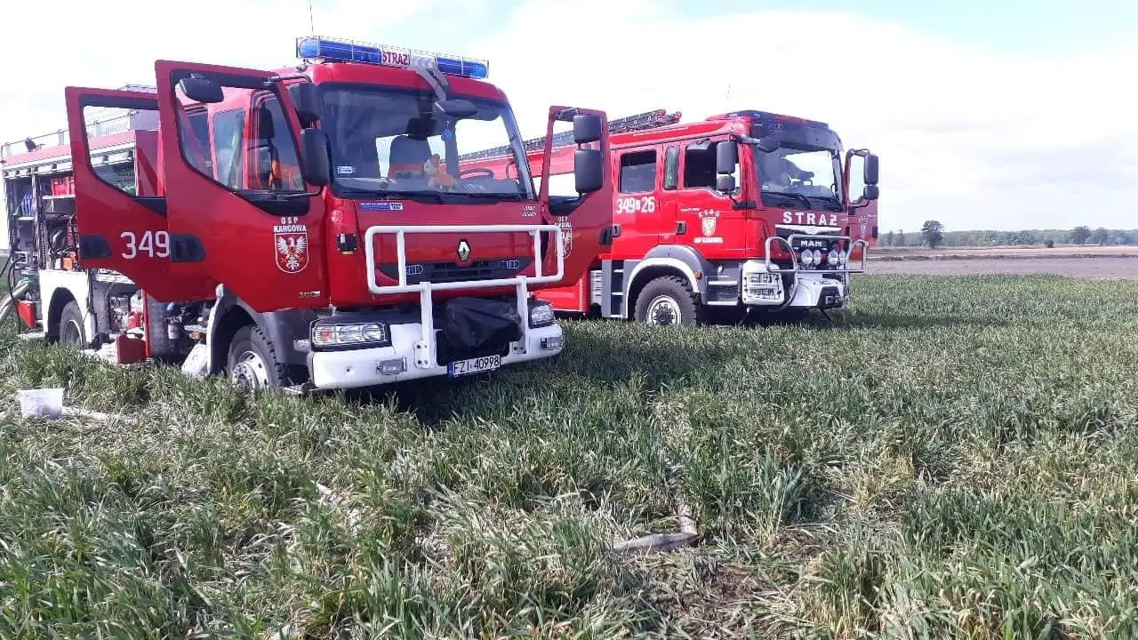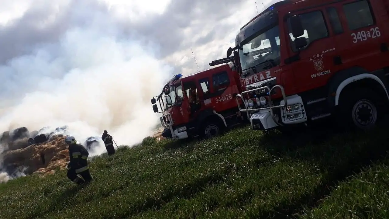 OSP Kargowa przez pół dnia walczyło z pożarem stogu słomy na polu między Kargową i Dąbrówką Wielkopolską.