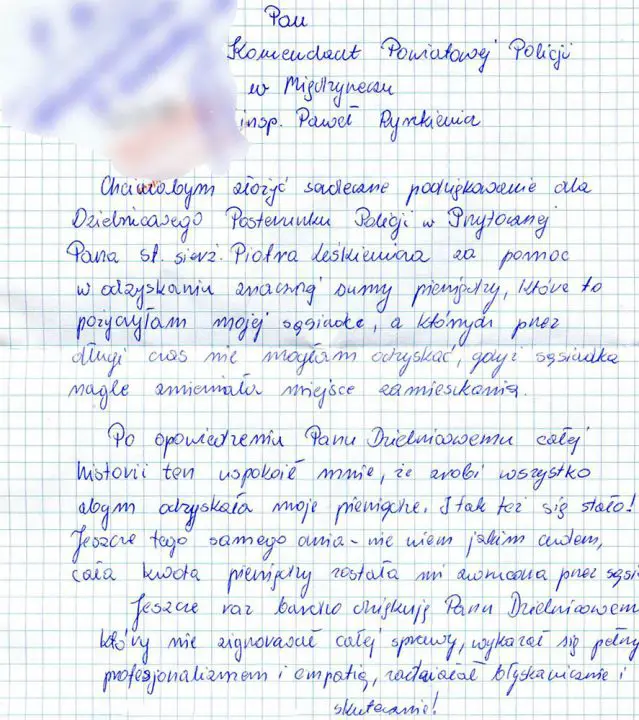 Jeszcze tego samego dnia policjant ustalił nowy adres zamieszkania kobiety, która nie oddała swojego długu. Pojechał do niej i przedstawił sytuację pod kątem merytorycznym oraz prawnym. Kobieta jeszcze tego samego dnia zwróciła pieniądze swojej, już byłej sąsiadce.
