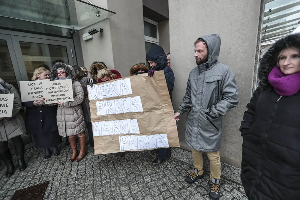 We wtorek, 15 stycznia, pracownicy Sądu Rejonowego wyszli przed budynek z transparentami. Tam protestują przeciwko niskim zarobkom. – Pracujemy za miskę ryżu – mówią pracownicy administracyjni sądu.