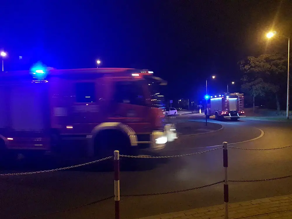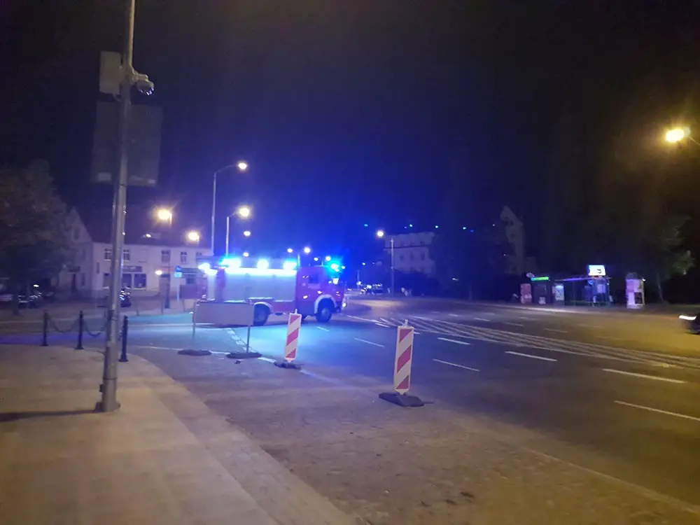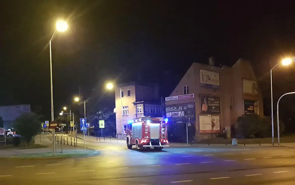 Godz. 22.27 Akcja cały czas trwa. Wozy straży pożarnej są na różnych ulicach.
