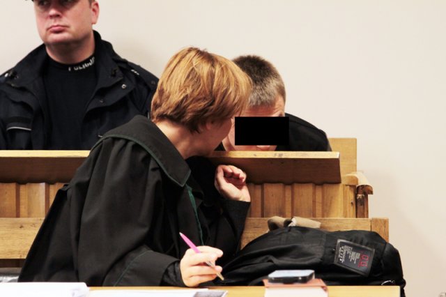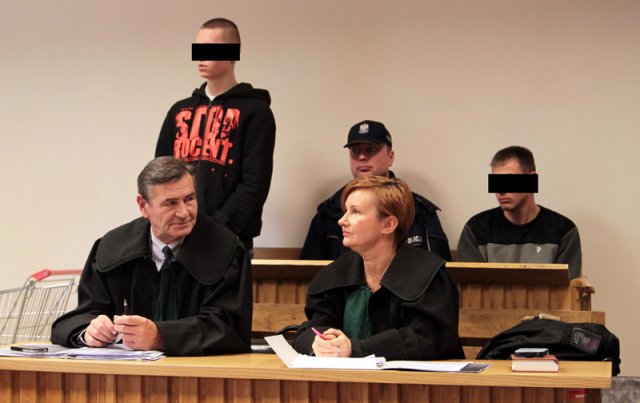 Na sądową salę zostały proszone osoby uczestniczące w rozprawie. W ławie oskarżonych siedzą Filip K. i Jacek B. Asystuje policja. Filip skuty kajdankami na rozprawę został dowieziony z aresztu. Zdaniem prokuratury to on prowadził w chwili tragedii. Jacek B. do sądu stawił się sam. Przyszedł z rodziną. Był pasażerem forda.