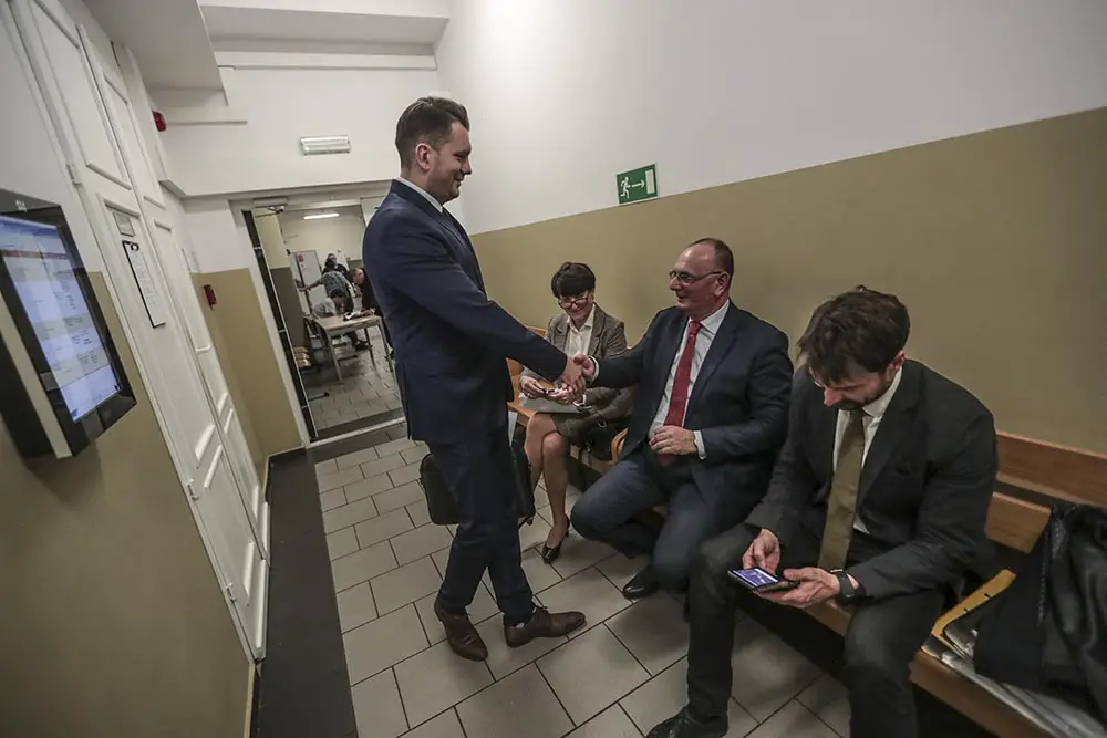 Marszałek Elżbieta Polak (PO) w zielonogórskim sądzie okręgowym stawiła się razem z Stanisławem Tomczyszynem (PSL). Nie mieli adwokata. Łukasz Mejza (Bezpartyjni Samorządowcy) do sądu przyszedł z mecenasem Przemysławem Piątkiem. Mejza przyznał, że o procesie dowiedział się kilka minut po godz. 11.00 i miał mało czasu na przygotowanie.