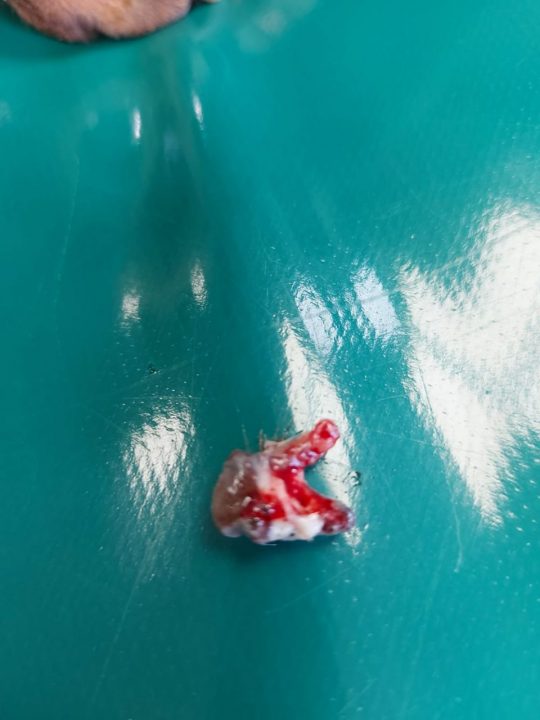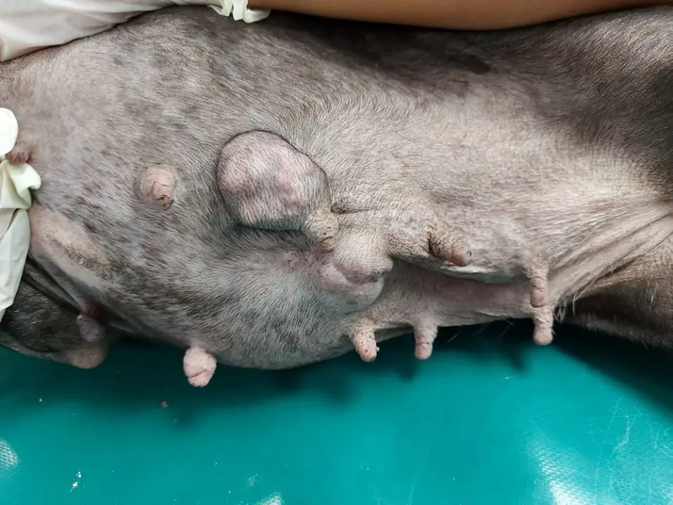 To musiało być dawno, bo nawet po bliźnie nie został ślad, za to poniżej szwów znajdujemy kolejny guz.