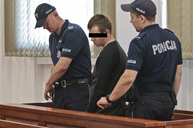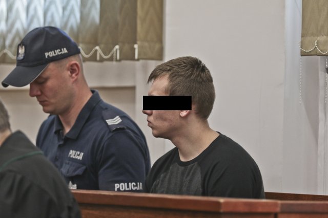 Radek W. w poniedziałek 23 maja na sądową salę wszedł skuty kajdanami i łańcuchami. Oskarżony o śmiertelne pobicie Tadeusza młody człowiek nie wyraża skruchy. Momentami uśmiecha się w sądzie. Na sądowym korytarzu z uśmiechem przybił tzw. ,,żółwika” ze swoim ojcem. Jakby nie rozumiał, że jest oskarżony o śmiertelne skatowanie człowieka.