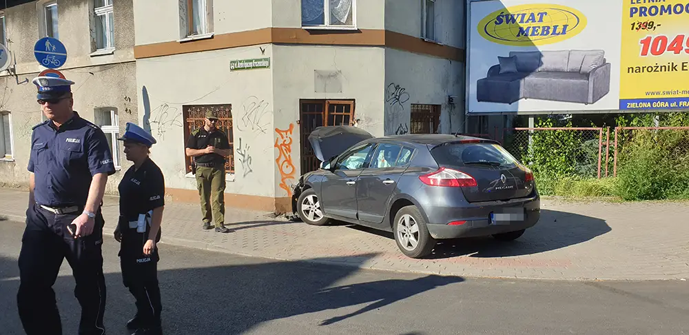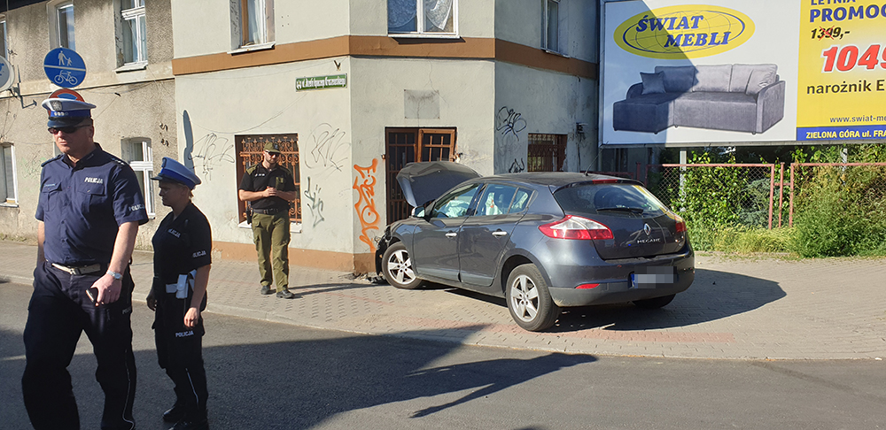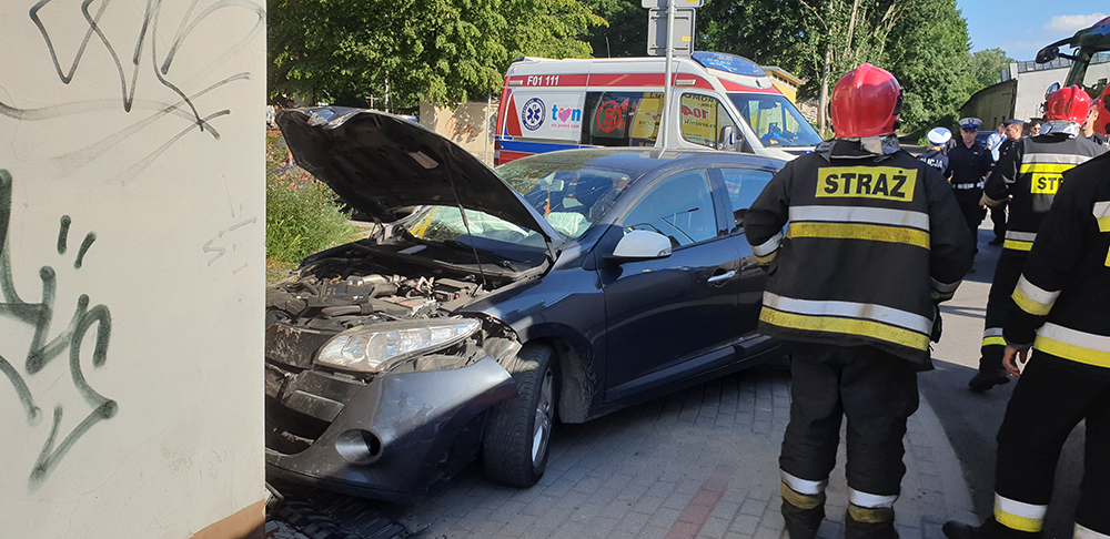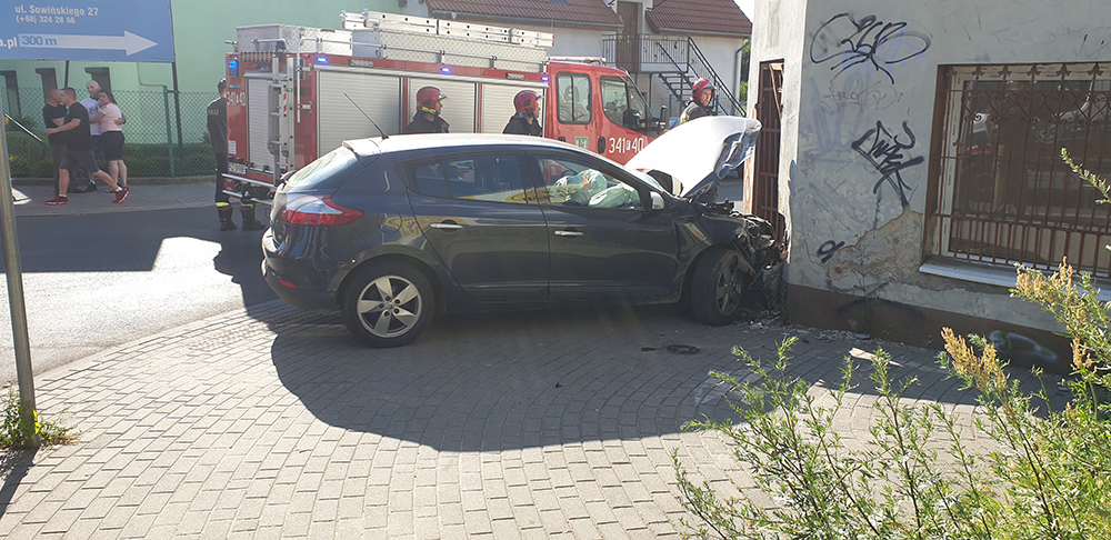 Do wypadku doszło we wtorek, 18 czerwca, na ul. Sienkiewicza przy skrzyżowaniu z ul. Kraszewskiego. Kierujący renault wypadł z drogi i uderzył przodem w dom.