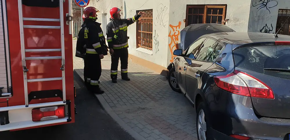Do wypadku doszło około godz. 17.40. Kierujący renault jechał ul. Sienkiewicza w kierunku ul Stromej. Na wysokości skrętu w ul. Kraszewskiego renault wpadło w poślizg. Samochód wypadł z drogi, przejechał przez chodnik i uderzył w ścianę domu.