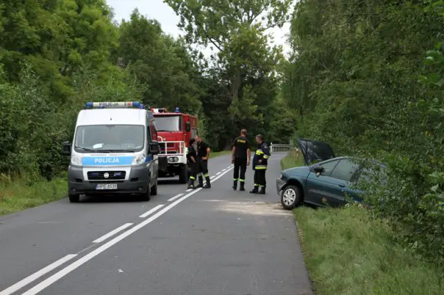 Kobieta prowadząca renault jechała w kierunku Zielonej Góry. Nagle zjechała na lewy pas ruchu. Z naprzeciwka jechała ciężarówka. Kierująca odbiła w prawo i wypadła z drogi. Renault zarył przodem w pobocze i bokiem uderzył w drzewo.